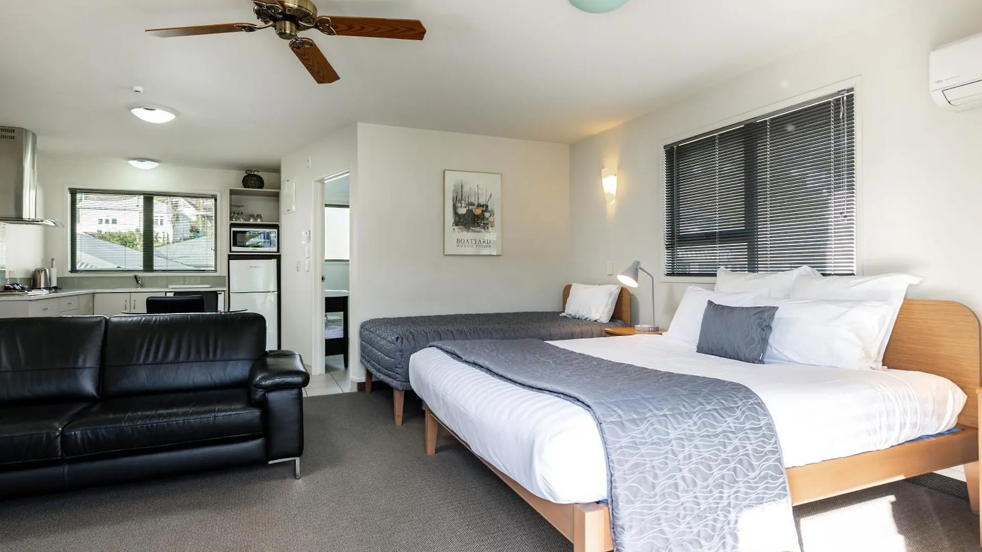 The 18 rooms at the Jasmine Court Motel Picton comprise a kitchenette. The view of the ocean and the elegant furniture are provided there. The bathrooms come with a walk-in shower, a lowered sink, and a separate toilet, along with hairdryers and towels.